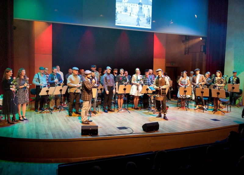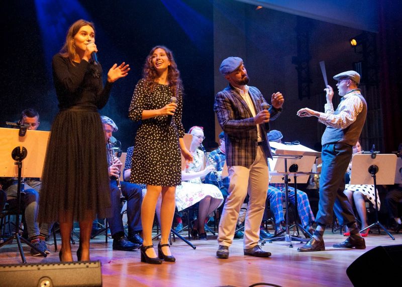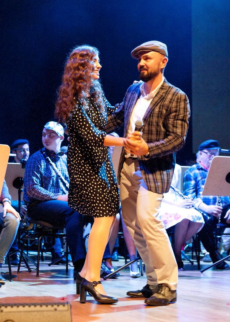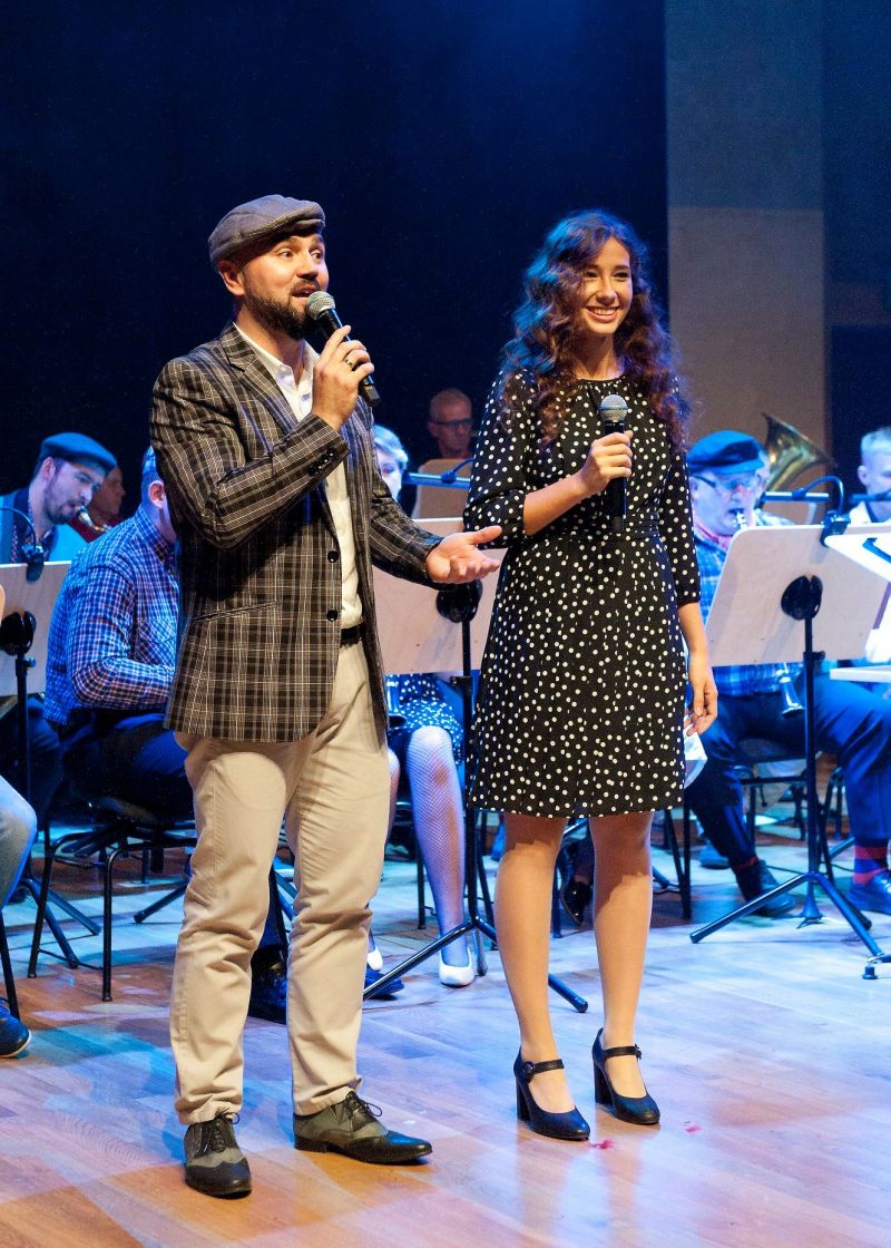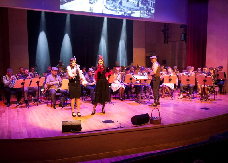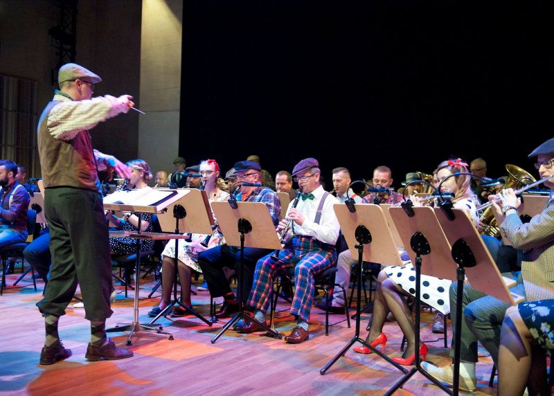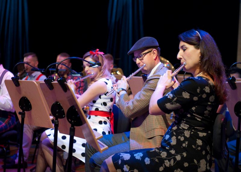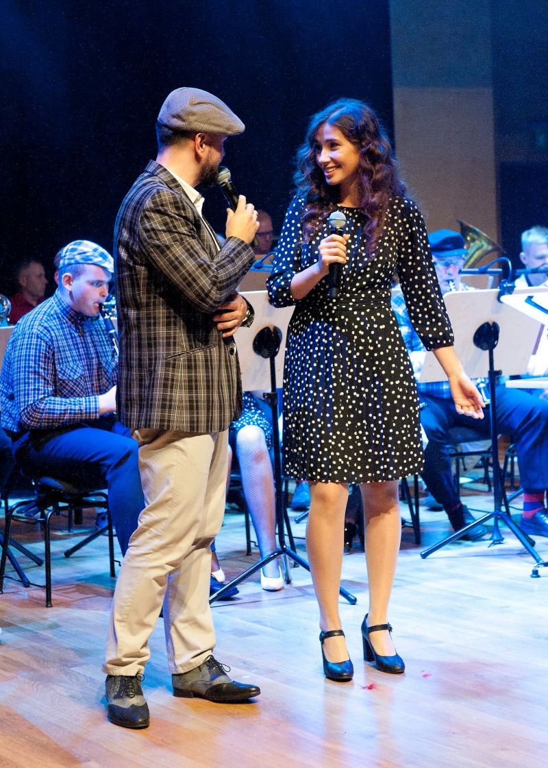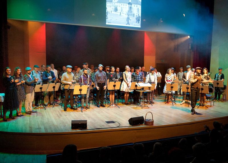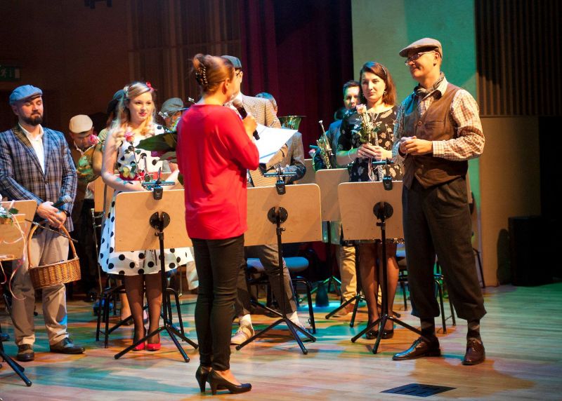 To był wyjątkowy koncert. Rzesze mińskich słuchaczy, które w niedzielę 21 października przybyły do Miejskiej Szkoły Artystycznej, zamiast umundurowanych jak zwykle muzyków Orkiestry Dętej Miasta Mińsk Mazowiecki zobaczyli na scenie całkiem odmieniony zespół. Sukienki w kwiaty, kraciaste marynarki, kaszkiety i kamizelki… scenę opanował szyk w stylu warszawskiego retro.
