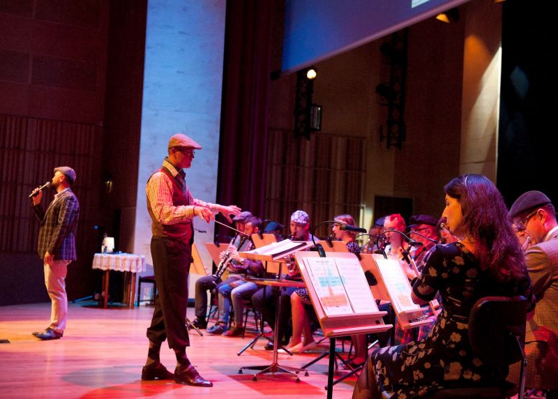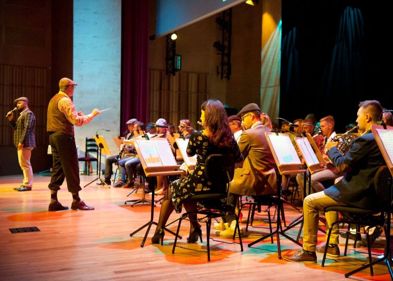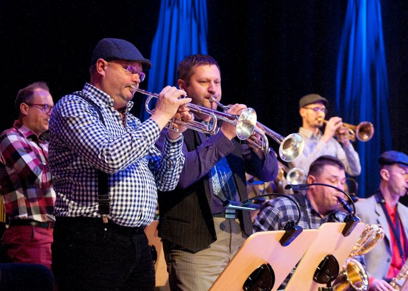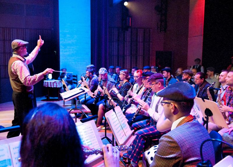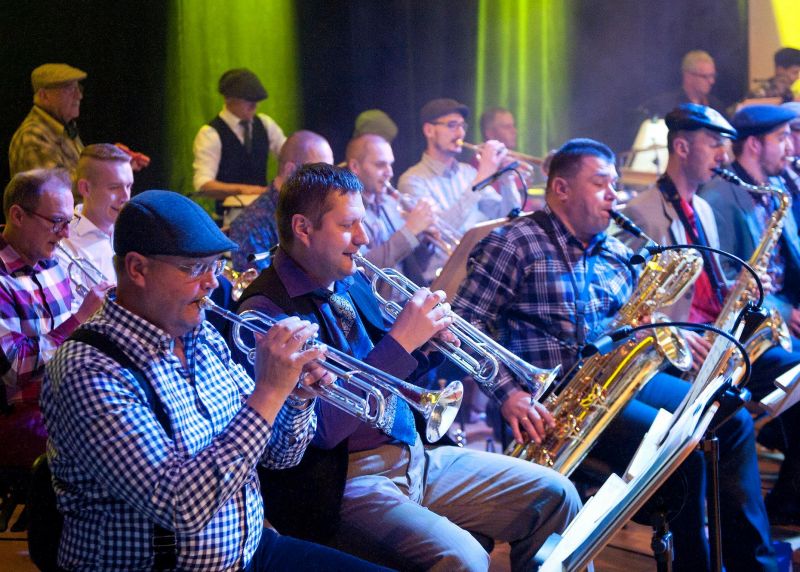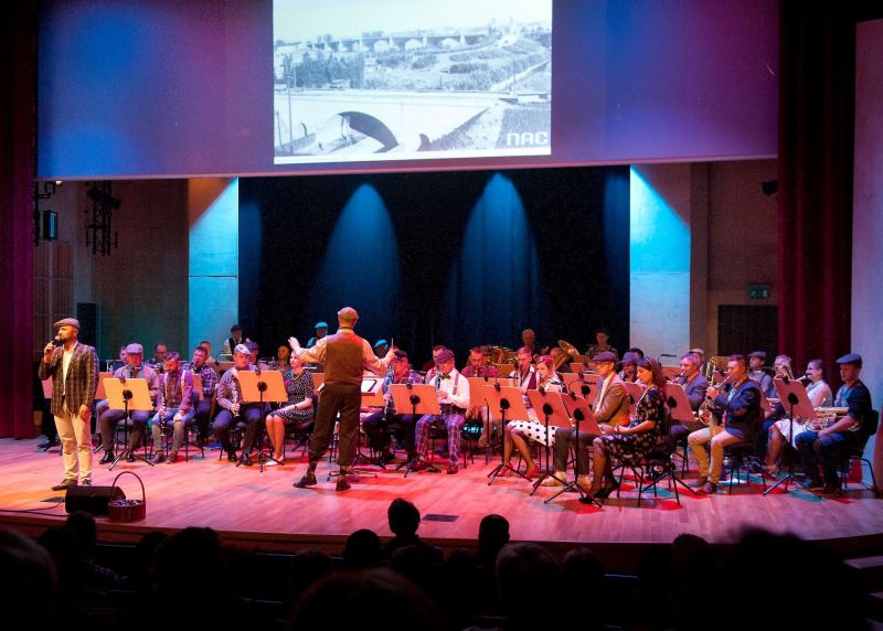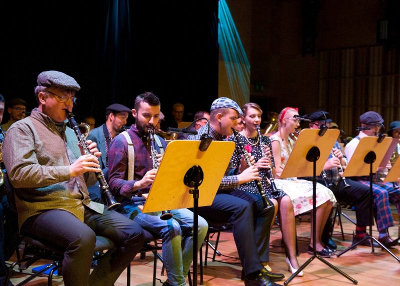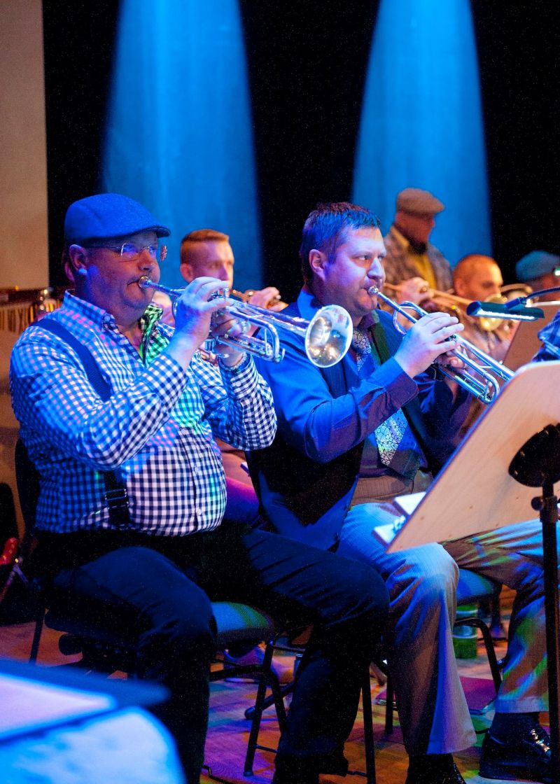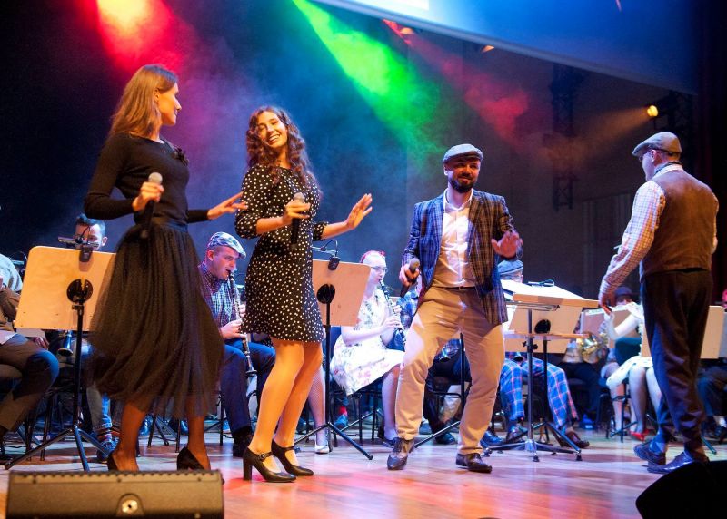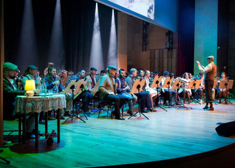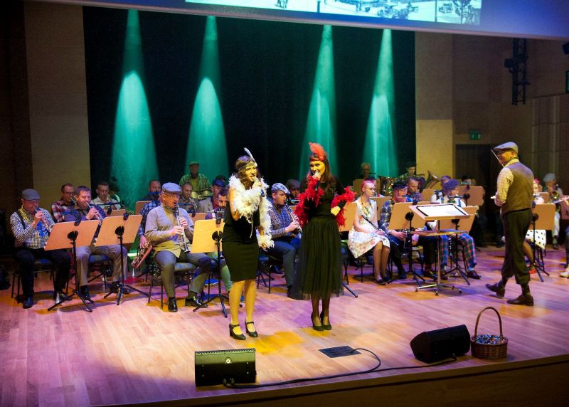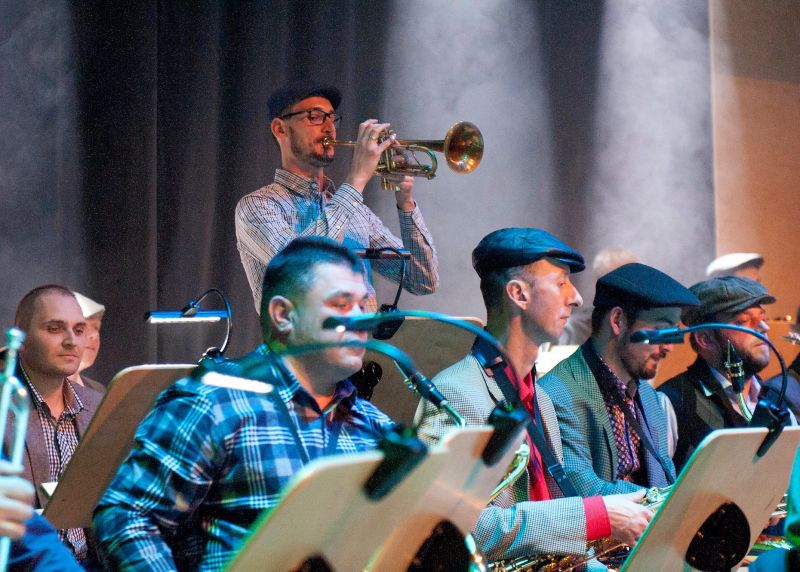 To był wyjątkowy koncert. Rzesze mińskich słuchaczy, które w niedzielę 21 października przybyły do Miejskiej Szkoły Artystycznej, zamiast umundurowanych jak zwykle muzyków Orkiestry Dętej Miasta Mińsk Mazowiecki zobaczyli na scenie całkiem odmieniony zespół. Sukienki w kwiaty, kraciaste marynarki, kaszkiety i kamizelki… scenę opanował szyk w stylu warszawskiego retro.