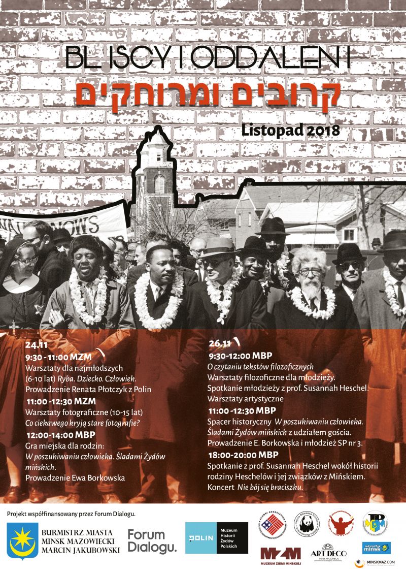 W południe tego dnia powtórzymy spacer historyczny, który poprowadzi pani Ewa Borkowska. Cieszył się on dużą uwagą w sierpniu podczas miejskich obchodów rocznicy likwidacji mińskiego getta. Spacer chcemy uczynić swego rodzaju hołdem dla Abrahama J. Heschela, który wraz z Martinem Lutherem Kingiem szedł w słynnym marszu z Selmy do Montgomery, sprzeciwiając się dyskryminacji rasowej.