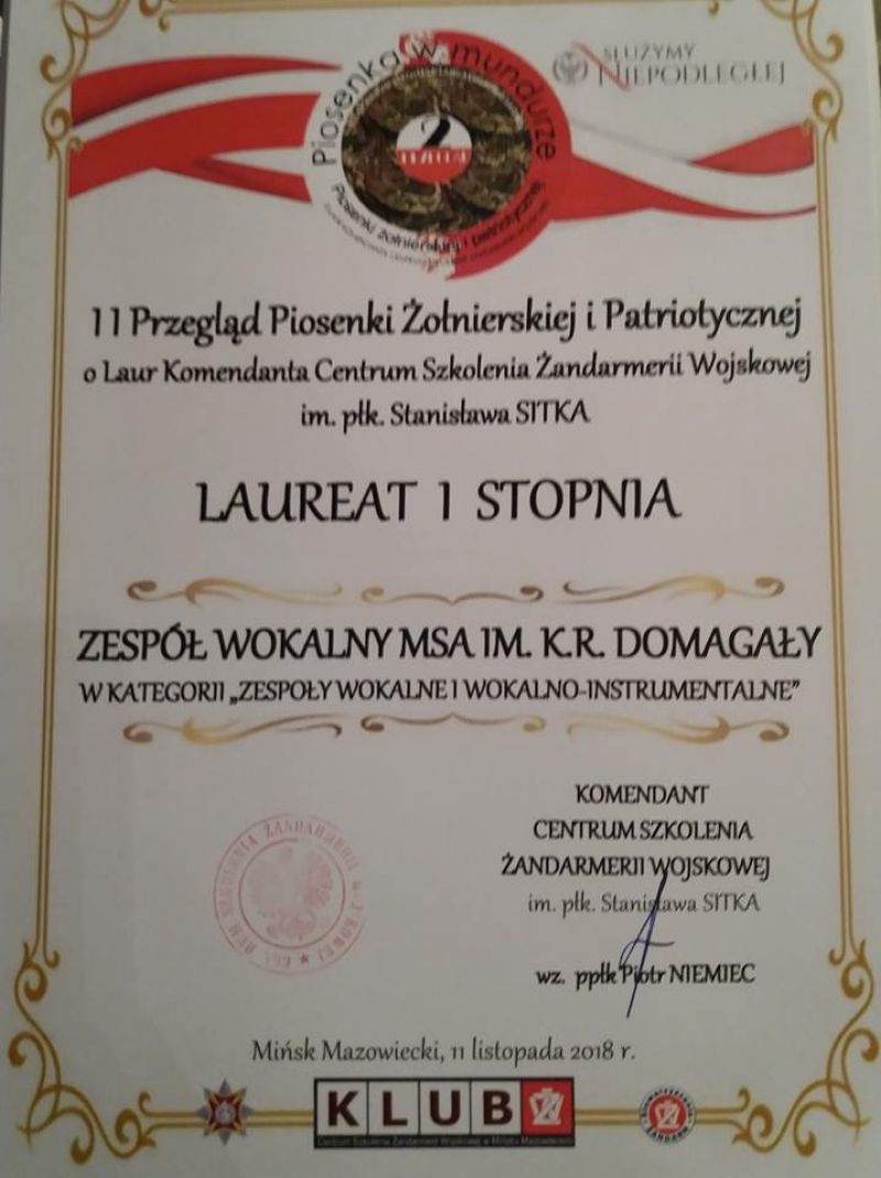 Zapraszamy również serdecznie na koncert "DLA BIAŁO - CZERWONEJ", który odbędzie się 11.11.2018 r. w sali widowiskowej Klubu Centrum Szkolenia Żandarmerii Wojskowej w Mińsku Mazowieckim. Wykonawcami będą laureaci II Przeglądu Piosenki Żołnierskiej i Patriotycznej " Piosenka w Mundurze".