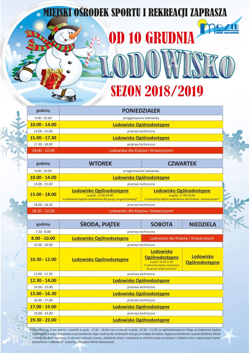 W załączeniu zamieszczamy harmonogram pracy lodowiska.