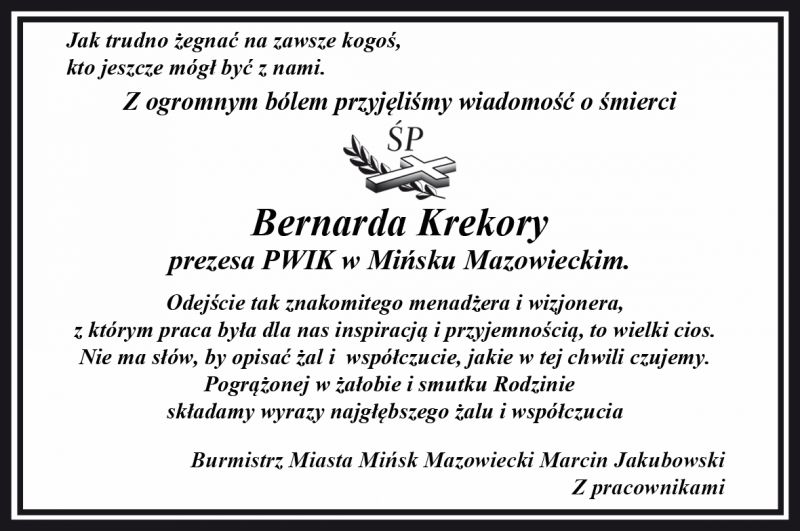 Nabożeństwo żałobne odbędzie się w Nowym Kościele Parafii Najświętszego Serca Pana Jezusa w Starej Miłosnej, ul.Borkowska 1, we wtorek, 11.12.2018 r. o godz. 10.00. Po nabożeństwie nastąpi wyprowadzenie na cmentarz w Warszawie Wesołej (Starej Miłosnej).