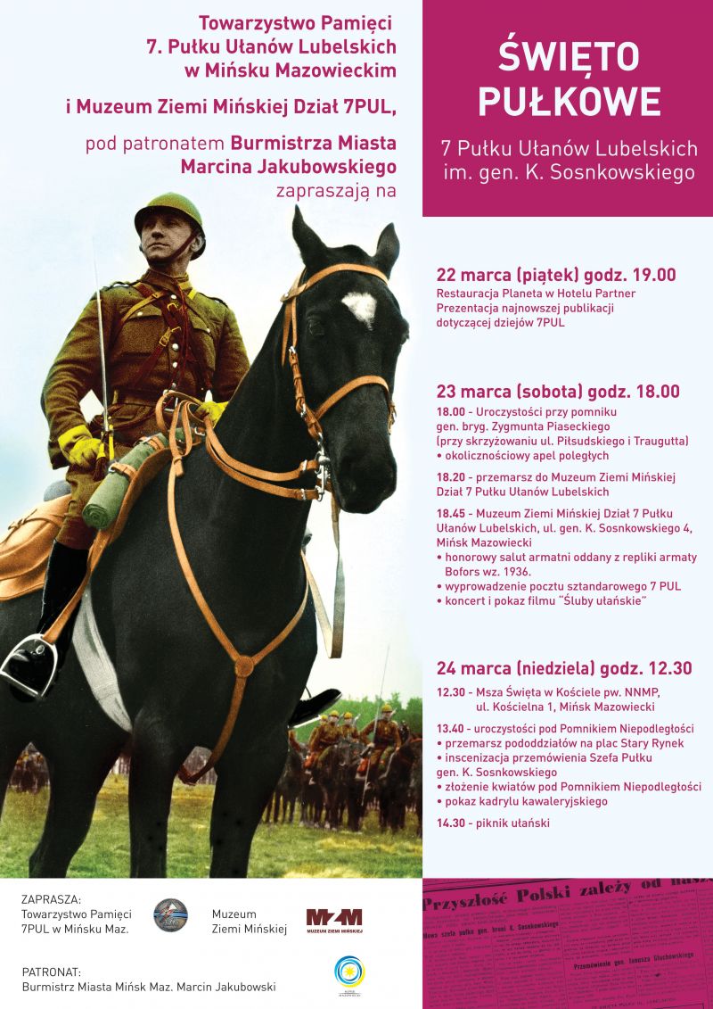 Serdecznie zapraszamy na obchody święta 7. Pułku Ułanów Lubelskich w Mińsku Mazowieckim, organizowane przez Towarzystwo Pamięci 7. Pułku Ułanów Lubelskich wspólnie z Muzeum Ziemi Mińskiej.