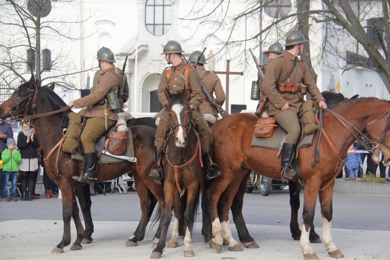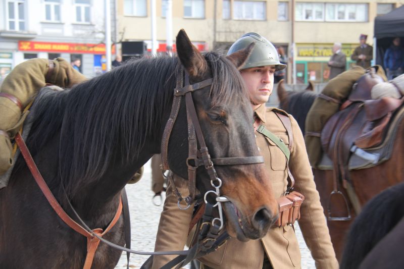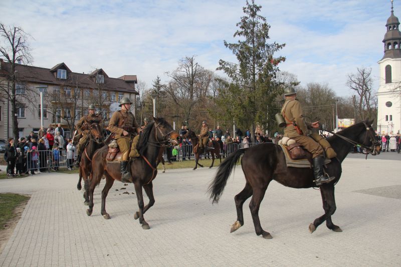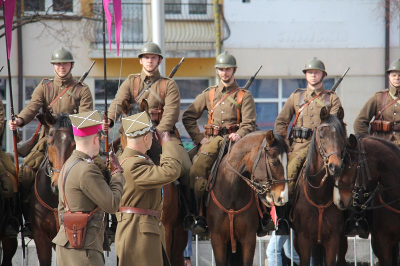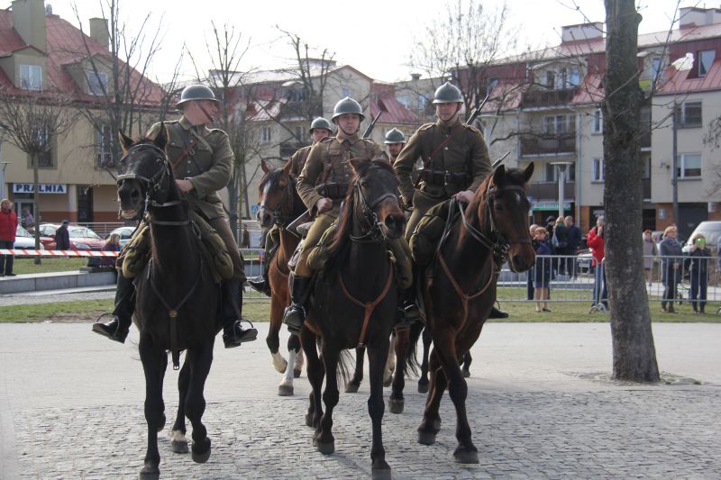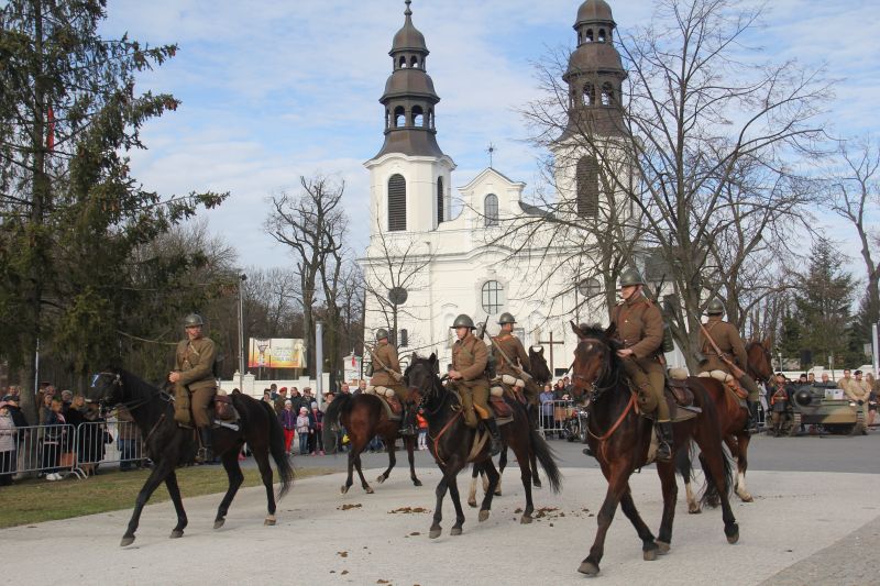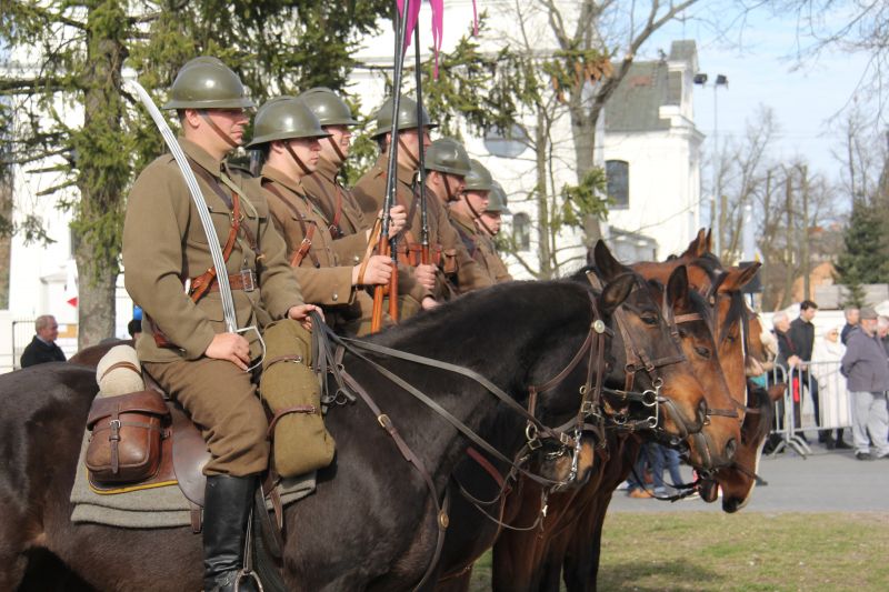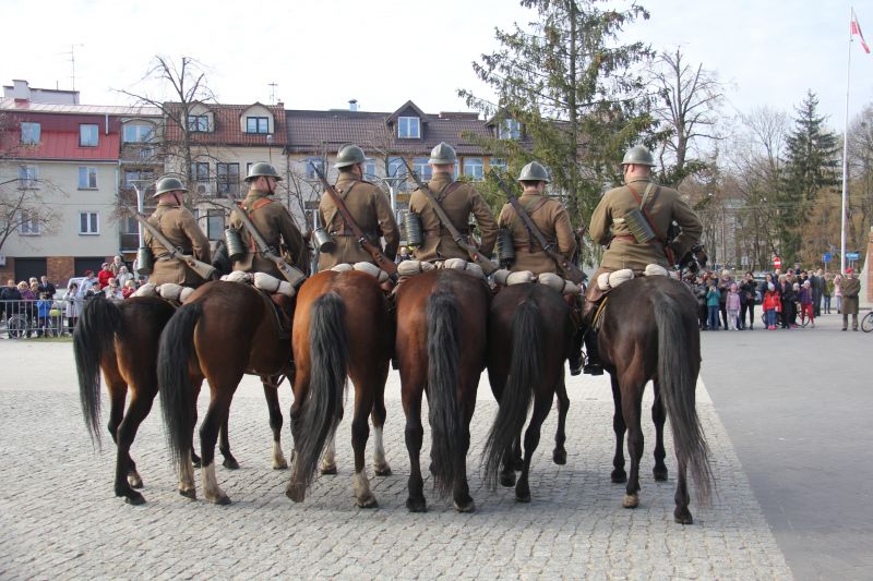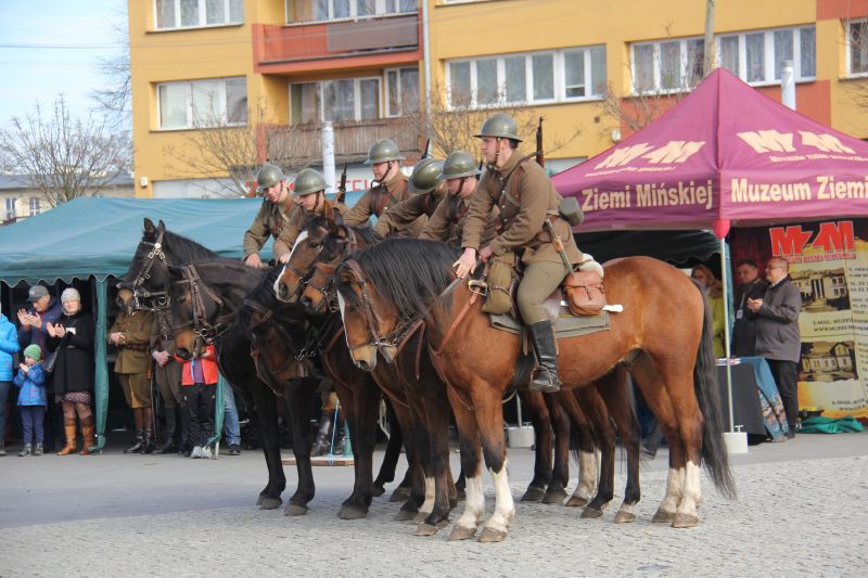 13.40 - uroczystości pod Pomnikiem Niepodległości w Mińsku Mazowieckim, pokaz kadryla kawaleryjskiego