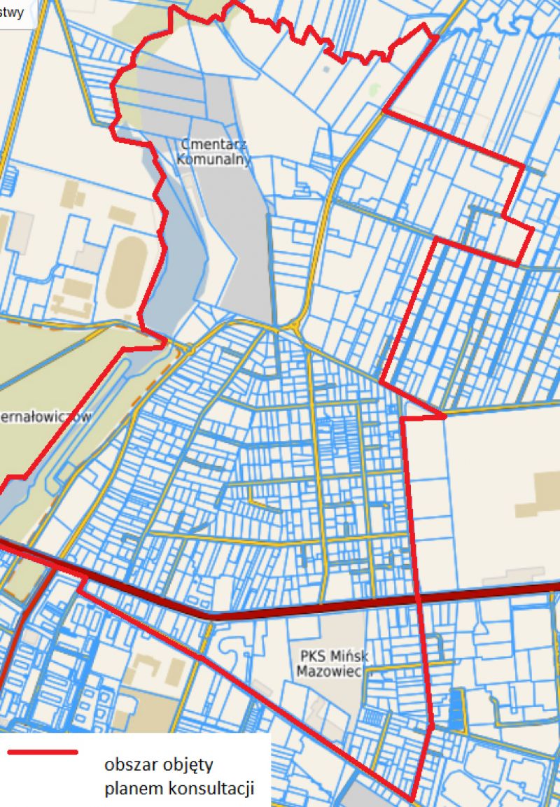 Informacja Burmistrza Miasta Mińsk Mazowiecki o zamieszczeniu wniosku o ustalenie lokalizacji inwestycji mieszkaniowej oraz inwestycji towarzyszącej w trybie specustawy mieszkaniowej ... dot. ul. Łąkowej