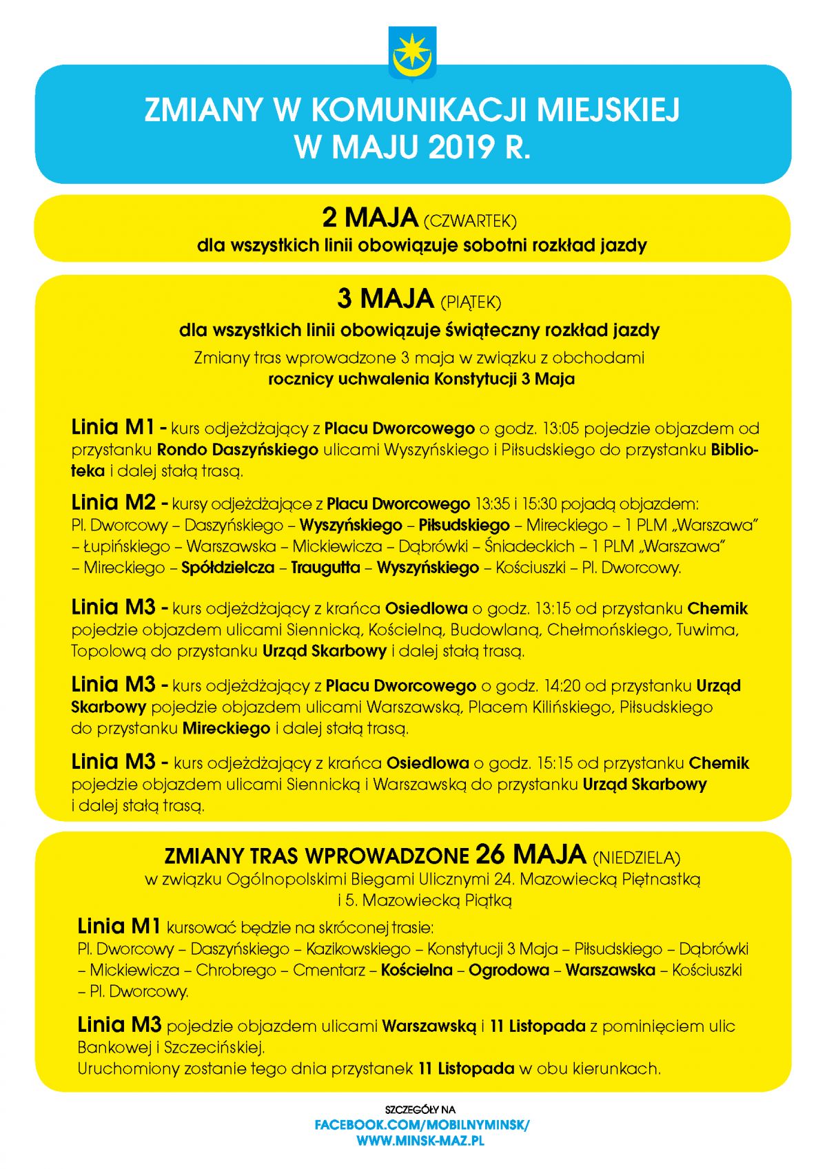 Komunikacja miejska w dniach 2, 3 i 26 maja 2019 r. |