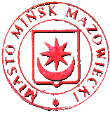 koło o średnicy 25mm herb, a w otoku napis "MIASTO MIŃSK MAZOWIECKI".