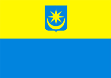 Miasto posiada flagę o barwach żółtej i niebieskiej z herbem Miasta pośrodku pola żółtego.