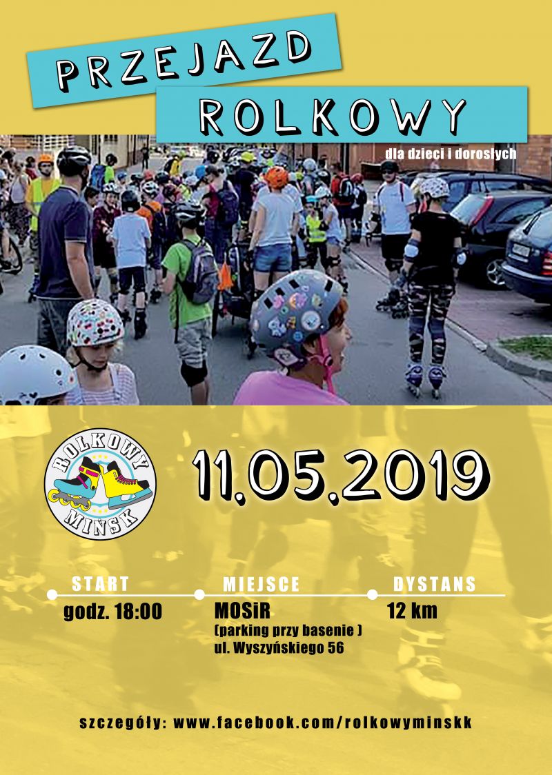 Rolkowy Mińsk zaprasza na przejazd rolkowy ulicami miasta w dniu 11 maja 2019 r. Start na parkingu przy basenie, godz. 18.00.