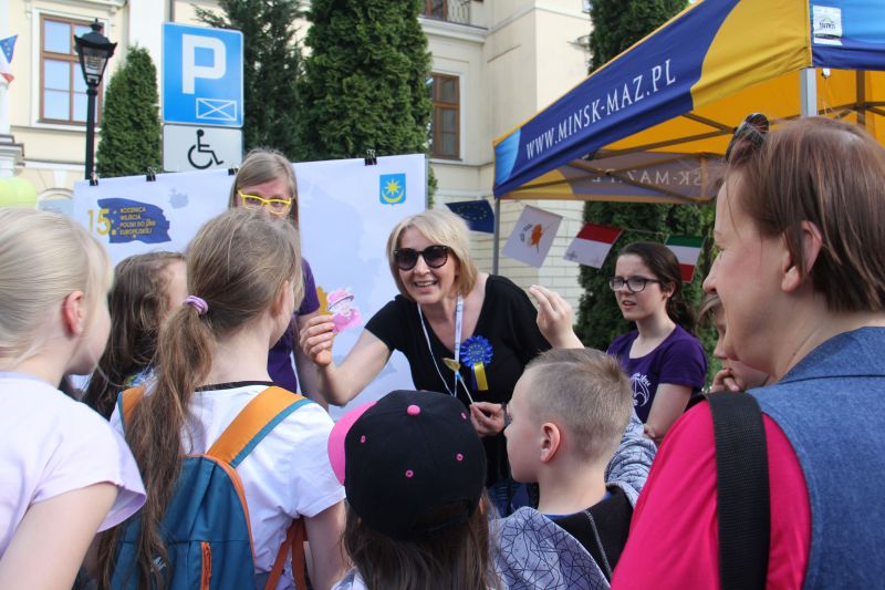 Piknik rodzinny, urodziny Galerii Emma, atrakcje dla małych i dużych to wszystko z okazji rodzin miasta. 26 maja mieliśmy okazję na spotkanie z mieszkańcami, których zaprosiliśmy do udziału w quizie o Mińsku Mazowieckim. Za każdą dobrą odpowiedź uczestnik zdobywał upominki związane z miastem lub żeton na atrakcje pikniku, takie jak dmuchane zjeżdżalnie, lody czy karuzelę ufundowane przez Galerię Emma. Jak zawsze mogliśmy liczyć na życzliwą pomoc wolontariuszy Fundacji EBU. Dziękujemy im za przeprowadzenie zabaw i animacji dla dzieci.
