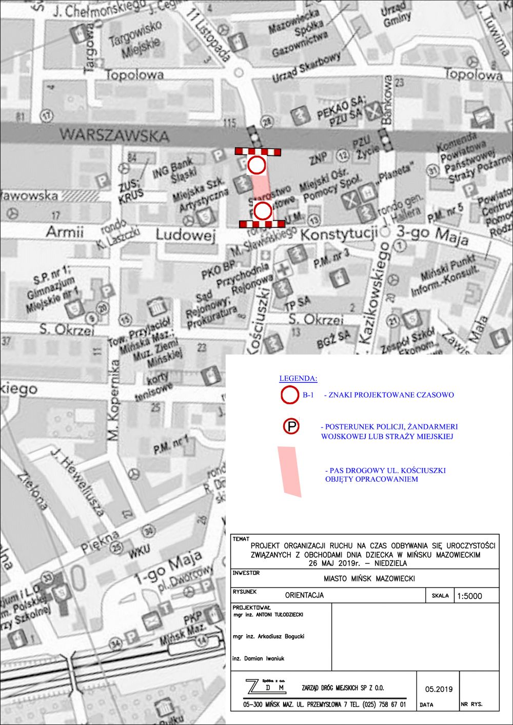 Zmiany w organizacji ruchu w dniu 26 maja w związku z organizacją Festynu Rodzinnego na ul. Tadeusza Kościuszki będą polegać na: