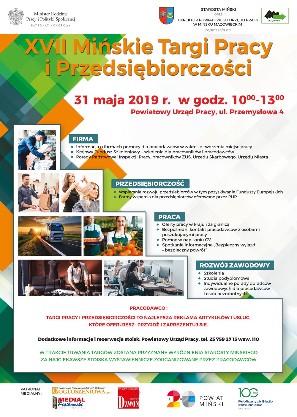 Zapraszamy na o XVII Mińskie Targi Pracy i Przedsiębiorczości - 31 maja 2019 r. Szczegóły na załączonym plakacie...