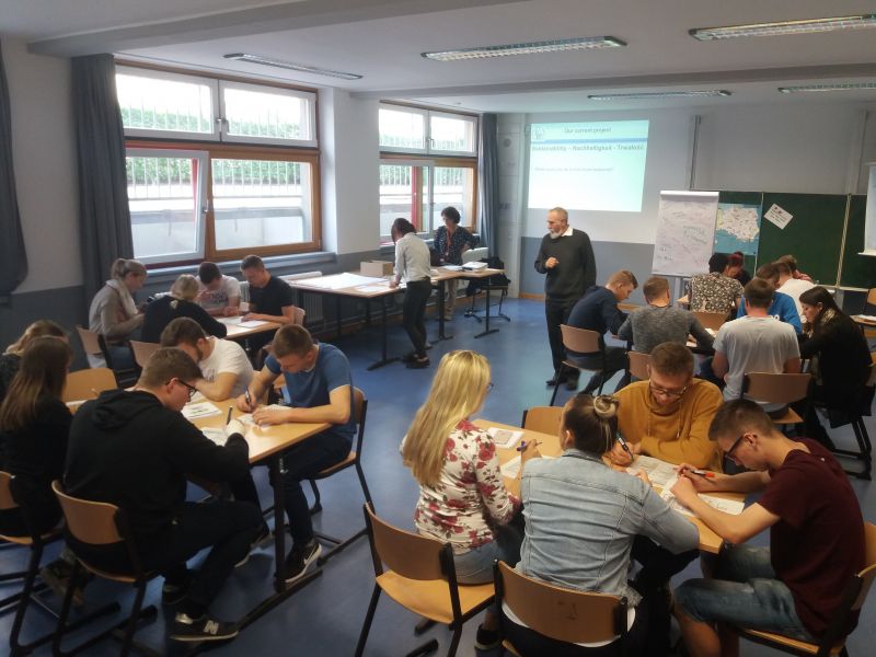 Dziesięcioosobowa grupa uczniów Zespołu Szkół Zawodowych nr 2 im. Powstańców Warszawy w Mińsku Mazowieckim wraz z opiekunami Piotrem Olkowiczem i Tomaszem Wróblewskim realizowała w Magdeburgu w dniach 19-25.05.2019 roku wraz z młodzieżą Berufsbildende Schulen I „Eike von Repgow” siódmy w historii wymiany projekt edukacyjny „Zrównoważoność”. Po oficjalnym powitaniu przez Panią dyrektor Gabrielę Lorenz, opiekunowie grupy niemieckiej Sylvia Ast, Nicole Bohne, Nicole Axmann i Bodo Buchholz przeprowadzili szereg zajęć zapoznawczych oraz lekcję języka niemieckiego dla Polaków i polskiego dla Niemców. Zwiedziliśmy wystawę „Odpady” przygotowaną przez klasę IK 16 i uczestniczyliśmy w prezentacji projektu „Zrównoważoność” autorstwa tej samej klasy.