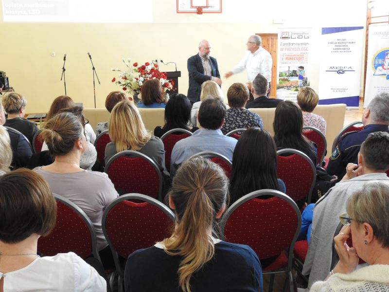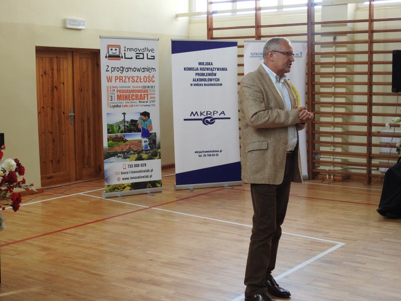 Dzień 23 maja był wyjątkowym dniem nie tylko dla społeczności szkolnej, ale także społeczności lokalnej. W murach Szkoły Podstawowej nr 5 im. Józefa Wybickiego odbyła się powiatowa konferencja profilaktyczno - edukacyjna zatytułowana „Nowe substancje psychoaktywne” połączona z oficjalnym otwarciem szkolnego ogrodu rekreacyjnego, zbudowanego w oparciu o projekt naszych uczniów w programie Minecraft. Pani Dyrektor Ewa Szczerba powitała na wstępie wszystkich gości, a w szczególności burmistrza miasta Pana Marcina Jakubowskiego oraz sekretarza miasta i przewodniczącą Miejskiej Komisji Rozwiązywania Problemów Alkoholowych, Panią Jadwigę Frelak, współorganizatorów tej uroczystości. Wyraziła ogromną radość z obecności jednego z niekwestionowanych autorytetów w dziedzinie profilaktyki, dyrektora naukowego Centrum Profilaktyki Społecznej w Milanówku Pana Profesora Mariusza Jędrzejko, który przybył ze znanymi ekspertami z Fundacji HUMANUM: Panią Agnieszką Taper, Panem Leszkiem Roszczenko oraz Panem dr. Marcinem Bednarczykiem. Prelegenci przeprowadzili cztery wykłady dotyczące prezentacji zagrożeń związanych z używaniem nowych substancji psychoaktywnych. Dyrektor szkoły podziękowała wszystkim, którzy swą obecnością zaszczycili gospodarzy. A byli nimi: radni miasta, kierownicy oświatowi Urzędu Miasta, proboszczowi e z terenu miasta i gminy, przedstawiciele Straży Miejskiej oraz Komendy Powiatowej Policji, reprezentant Zespołu Kuratorskiej Służby Sądowej, przedstawiciele powiatowej Stacji Sanitarno- Epidemiologicznej , SP ZOZ i CPPR , pracownicy PPP jak również zaprzyjaźnieni dyrektorzy placówek z województwa mazowieckiego i świętokrzyskiego. Wśród gości nie zabrakło nauczycieli, pedagogów, psychologów i innych specjalistów ze szkół podstawowych i ponadpodstawowych z terenu miasta i powiatu mińskiego, kierowników internatów, przedstawicieli OHP oraz dyrektorów placówek oświatowych, kulturalnych, sportowych i społecznych. Pani Ewa Szczerba wyraziła zadowolenie z obecności rodziców na czele z Przewodniczącym Prezydium Rady Rodziców panem Dariuszem Świętochowskim. Podziękowała za przybycie przedstawicielom firm Inovacive Lab, AM Partners Warszawa oraz Gomar , którzy pomogli w organizacji tego wyjątkowego wydarzenia.