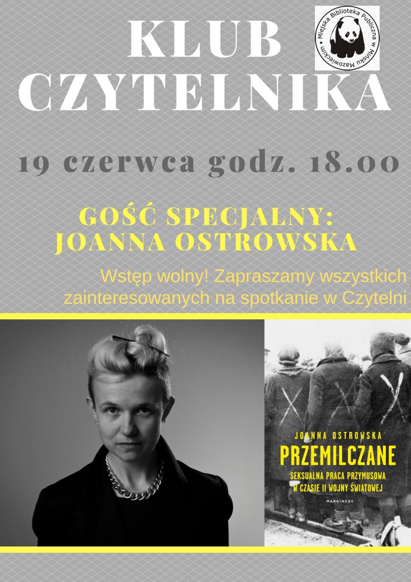 Gość specjalny Klubu Czytelnika! Wszystkich zainteresowanych zapraszamy na rozmowę z Joanną Ostrowską, autorką książki "Przemilczane. Seksualna praca przymusowa w czasie II wojny światowej". Autorka wykonała gigantyczną pracę w archiwach. Podjęła próbę przywrócenia głosu tym, których doświadczenia zostały przemilczane. Wspomina w książce także o Mińsku Mazowieckim.