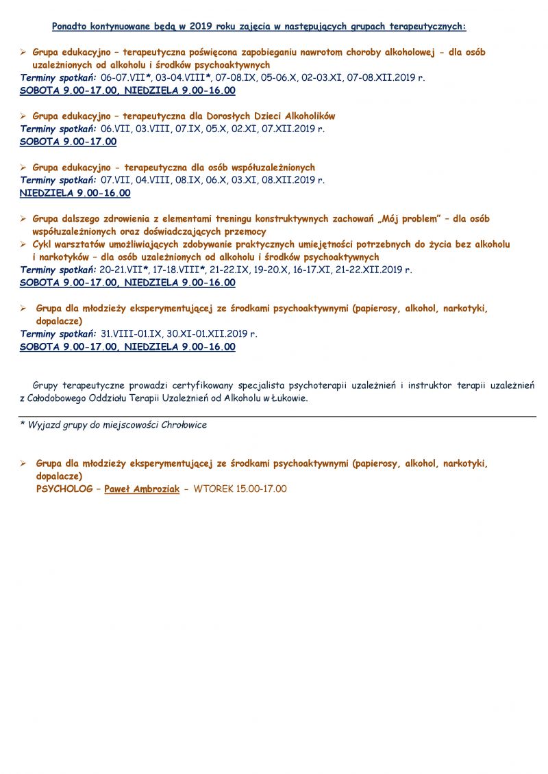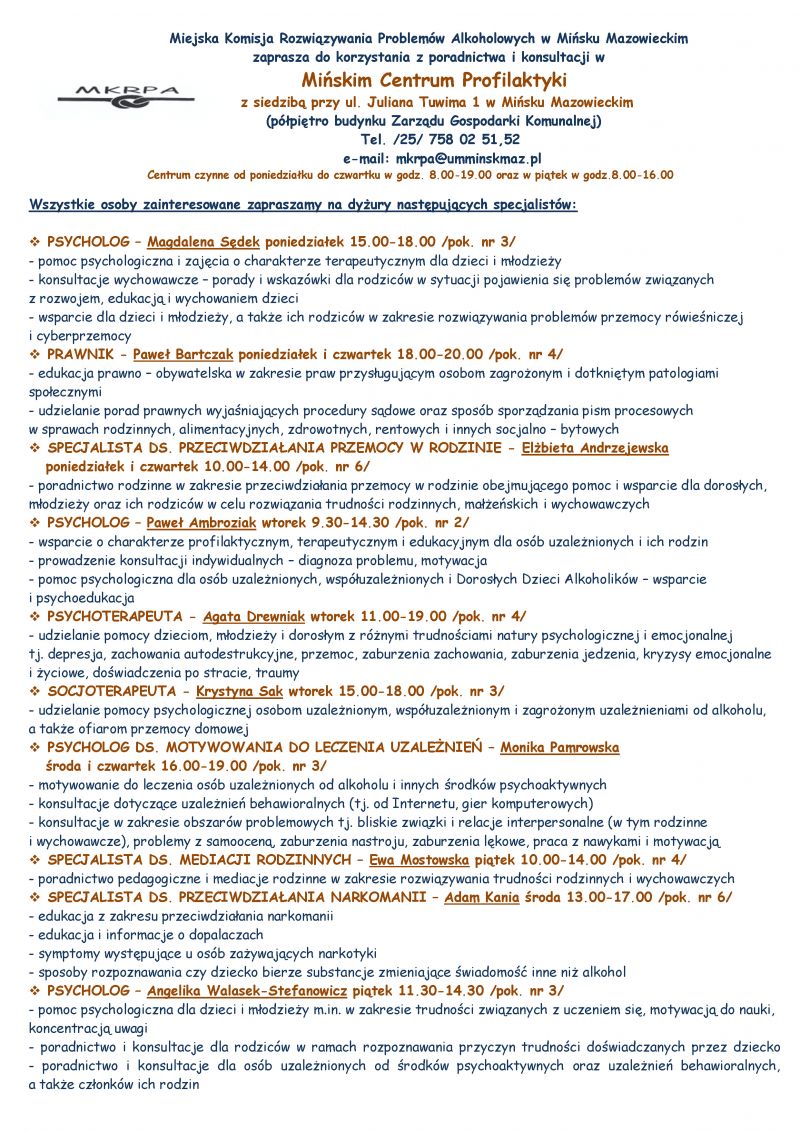 DYŻURY SPECJALISTÓW MIŃSKIEGO CENTRUM PROFILAKTYKI W OKRESIE WAKACYJNYM W 2019 ROKU ORAZ OFERTA MIŃSKIEGO CENTRUM PROFILAKTYKI