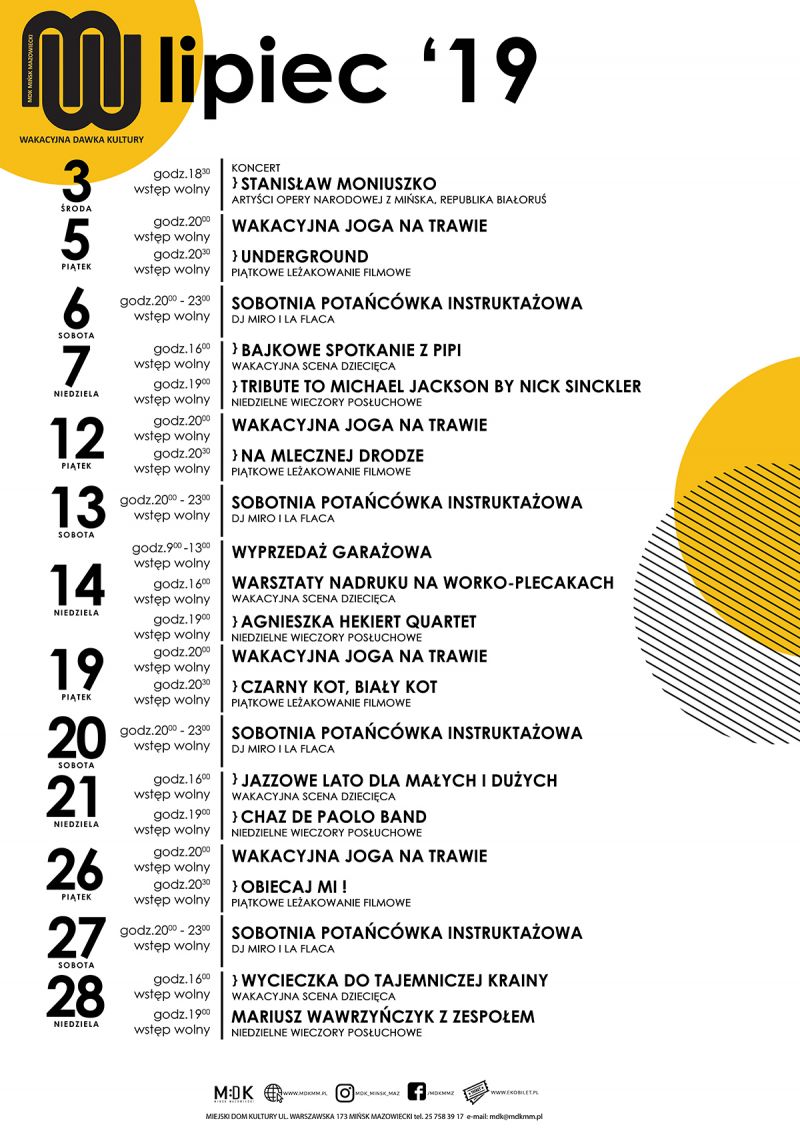 Oferta Miejskiego Domu Kultury na miesiąc lipiec 2019. Harmonogram wydarzeń w załączeniu...