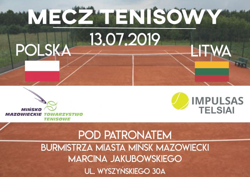 Zapraszamy na mecz tenisowy Polska-Litwa, 13 lipca 2019 r., ul. Wyszyńskiego 30 A.