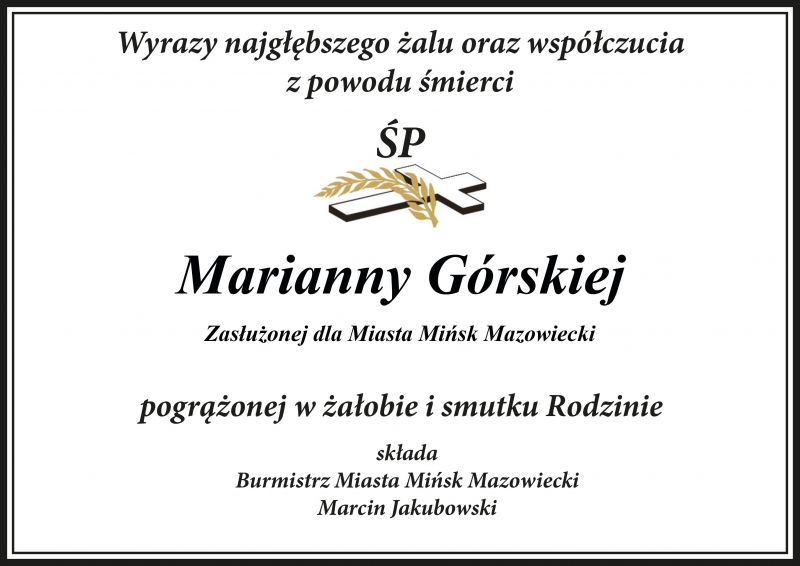 Pani Aliny Kałowskiej z kandydowania do Miejskiej Rady Seniorów w Mińsku Mazowieckim, uprzejmie informuję, że Pani Alina Kałowska nie kandyduje do ww. Rady.