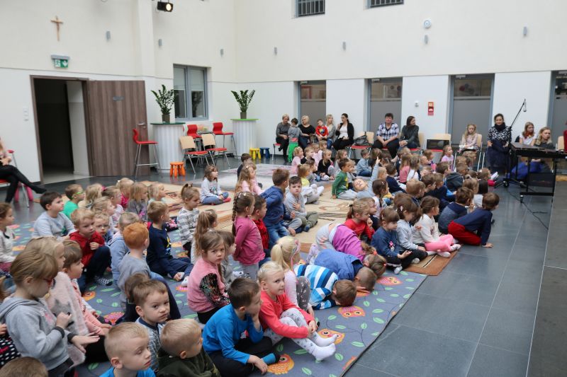 28 października Miejska Szkoła Artystyczna zaprosiła przedszkolaki na jesienny koncert z cyklu „Pory Roku”. W przystrojonej kolorami jesieni auli wystąpili uczniowie, pedagodzy oraz przedszkolaki, które tym razem zostały zaproszone do zabaw ruchowych i grania na instrumentach perkusyjnych. Powitanie odśpiewała dyrektor Paulina Rzewuska-Korycińska. Radości z muzycznej uczty dostarczyli: