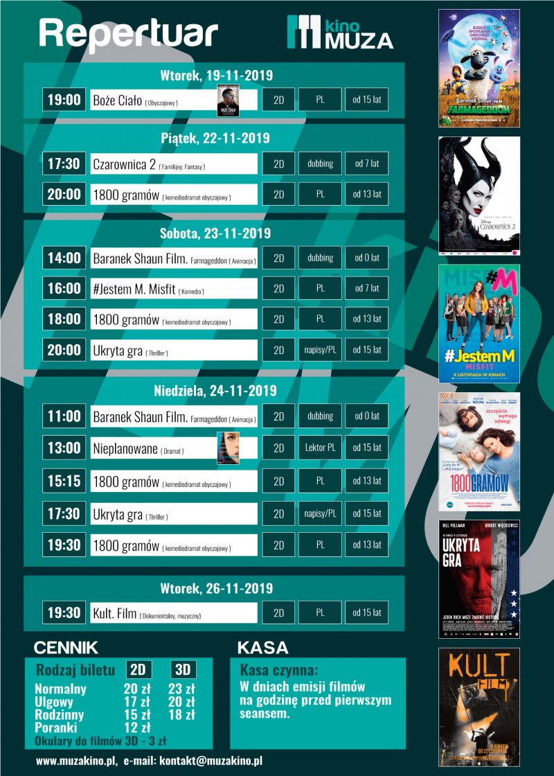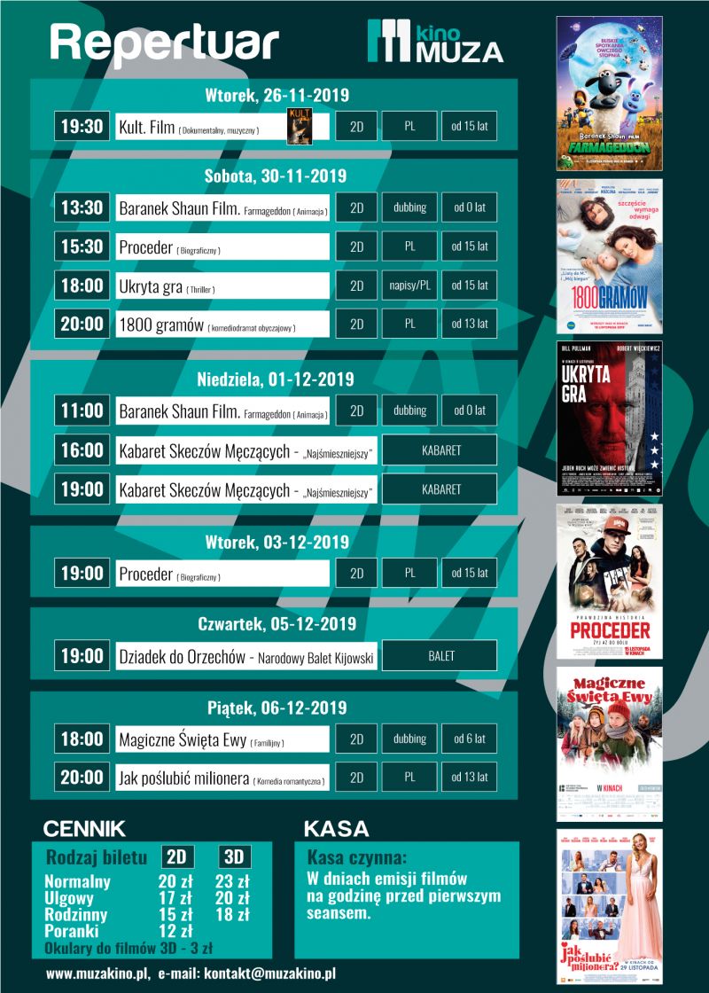 Repertuar Kina MUZA w dniach od 26 listopada do 6 grudnia 2019 r.