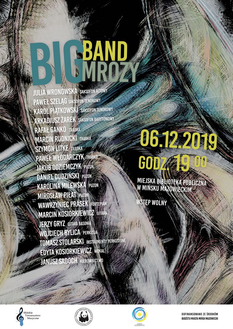 6 grudnia 2019 r. o godz.19.00 do Miejskiej Biblioteki Publicznej zaprasza Mińskie Towarzystwo Muzyczne. Wysłuchamy kolejnego koncertu muzyków z naszego miasta i okolic, którzy tworzą Big Band Mrozy.