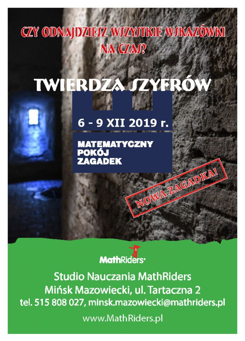 Studio Nauczania MathRiders z okazji Mikołajek zaprasza Dzieci i Młodzież na kolejną odsłonę Matematycznego Pokoju Zagadek pod hasłem "Twierdza Szyfrów"