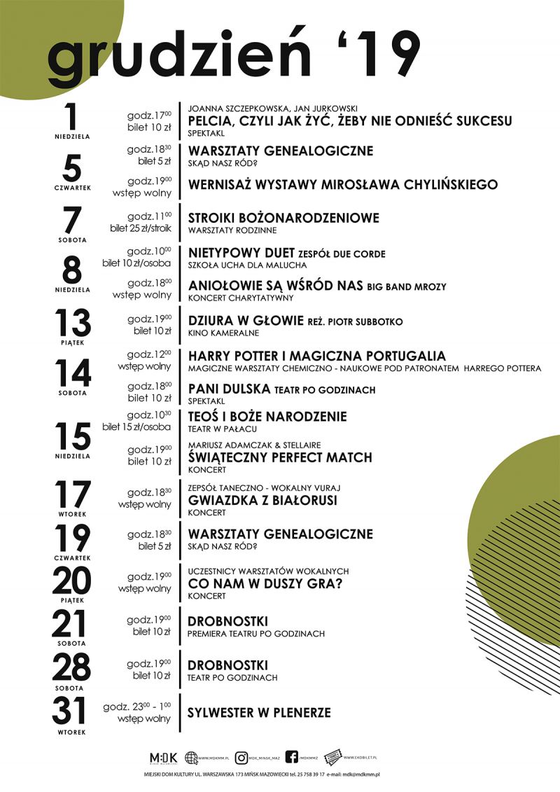 Zapraszamy do Miejskiego Domu Kultury. W załączeniu harmonogram imprez na grudzień 2019 r.