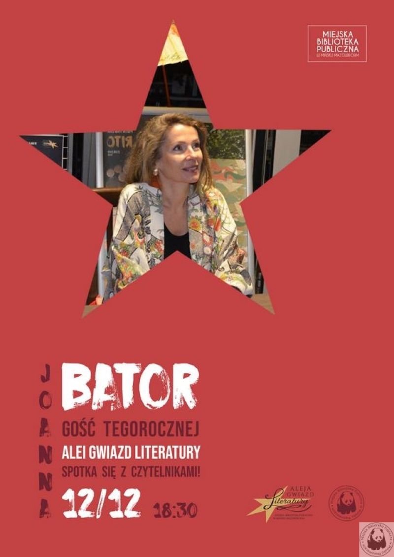 12 grudnia, o godz. 18:30 laureatka statuetki Gwiazdy, wręczonej podczas tegorocznej Gali Alei Gwiazd Literatury, Joanna Bator kolejny raz odwiedzi Miejską Bibliotekę Publiczną. Pisarka, publicystka, podróżniczka, eseistka, nauczycielka akademicka i antropolog kultury. Była stypendystką Fundacji Kościuszkowskiej, japońskiego Ministerstwa Kultury, Cannon Foundation i Japan Foundation.