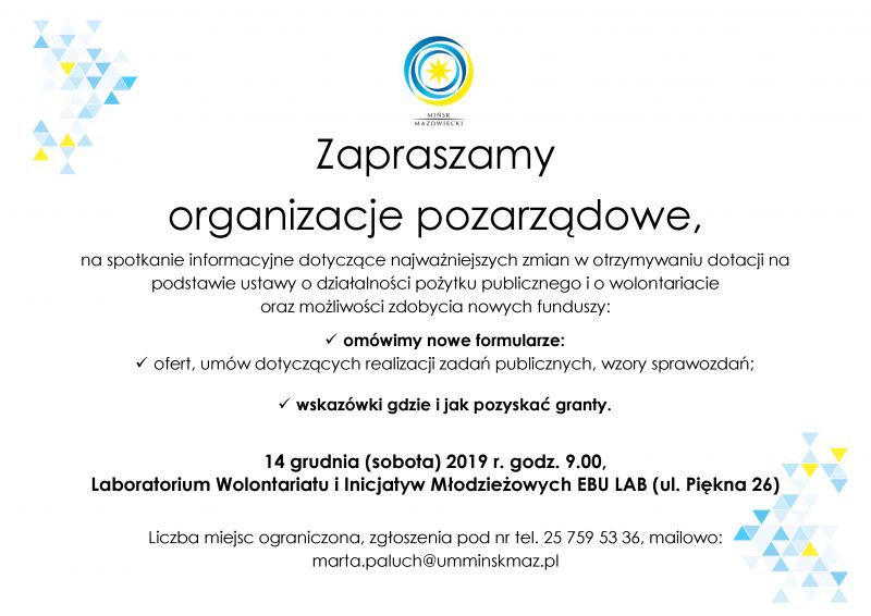 Zgłoszenia przyjmowane są w pokoju 216 Urzędu Miasta Mińsk Mazowiecki do 13.12.2019.