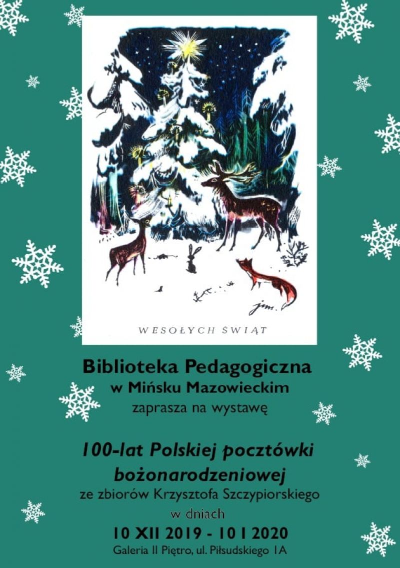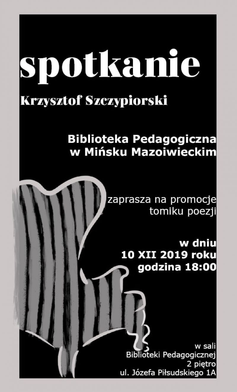 Biblioteka Pedagogiczna zaprasza 10 grudnia na godz.18.00 (II piętro) na promocję nowego tomiku poezji Krzysztofa Szczypiorskiego pt. "Spotkanie". Na zakończenie wieczoru poetyckiego nastąpi otwarcie w Galerii biblioteki wystawy "100 lat pocztówki bożonarodzeniowej" prezentującej kartki świąteczne z kolekcji autora.