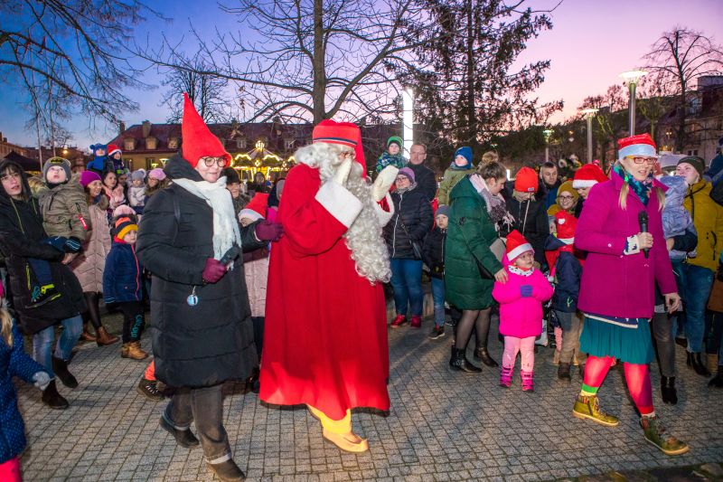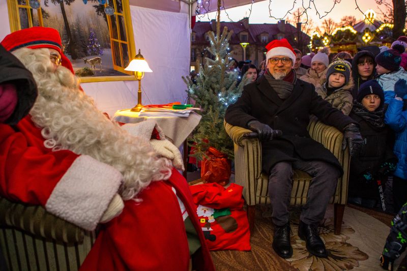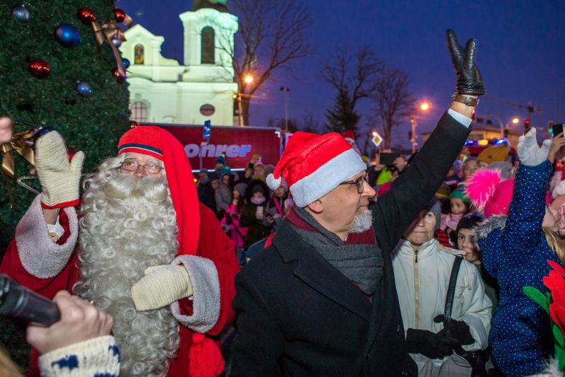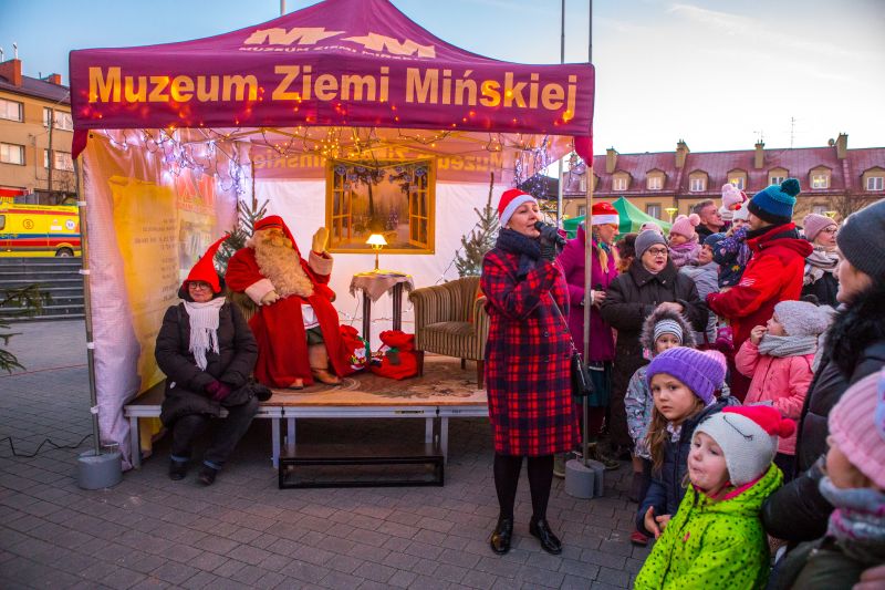 Wyjątkowy gość najpierw spotkał się ze społecznością szkolną Zespołu Szkół Specjalnych w Ignacowie, gdzie uczniowie przygotowali dla niego występ artystyczny. Następnie z przedszkolakami z mińskich placówek podzielił się opowieściami z Finlandii. O 16.00 na Placu Stary Rynek burmistrz Marcin Jakubowski wspólnie z najmłodszymi mińszczanami oraz tymi starszymi rozświetlili tradycyjną choinkę i, pierwszy raz w naszym mieście, stojące obok drzewko, które rozbłysło 10 tysiącami lampek. Tego dnia dzieci mogły usiąść w bajkowej karocy, skosztować waty cukrowej i przejechać się na kolorowej, rozświetlonej karuzeli. Gość honorowy – Mikołaj, cierpliwie pozował do zdjęć, a maluchy na pamiątkę otrzymywały specjalny certyfikat oraz słodki upominek. Szczególne podziękowania kierujemy do dyrektora muzeum Leszka Celeja za inicjatywę oraz do międzynarodowych wolontariuszy Fundacji EBU, którzy przez kilka godzin prowadzili zabawy dla najmłodszych, by umilić im oczekiwanie na zdjęcie z Mikołajem.