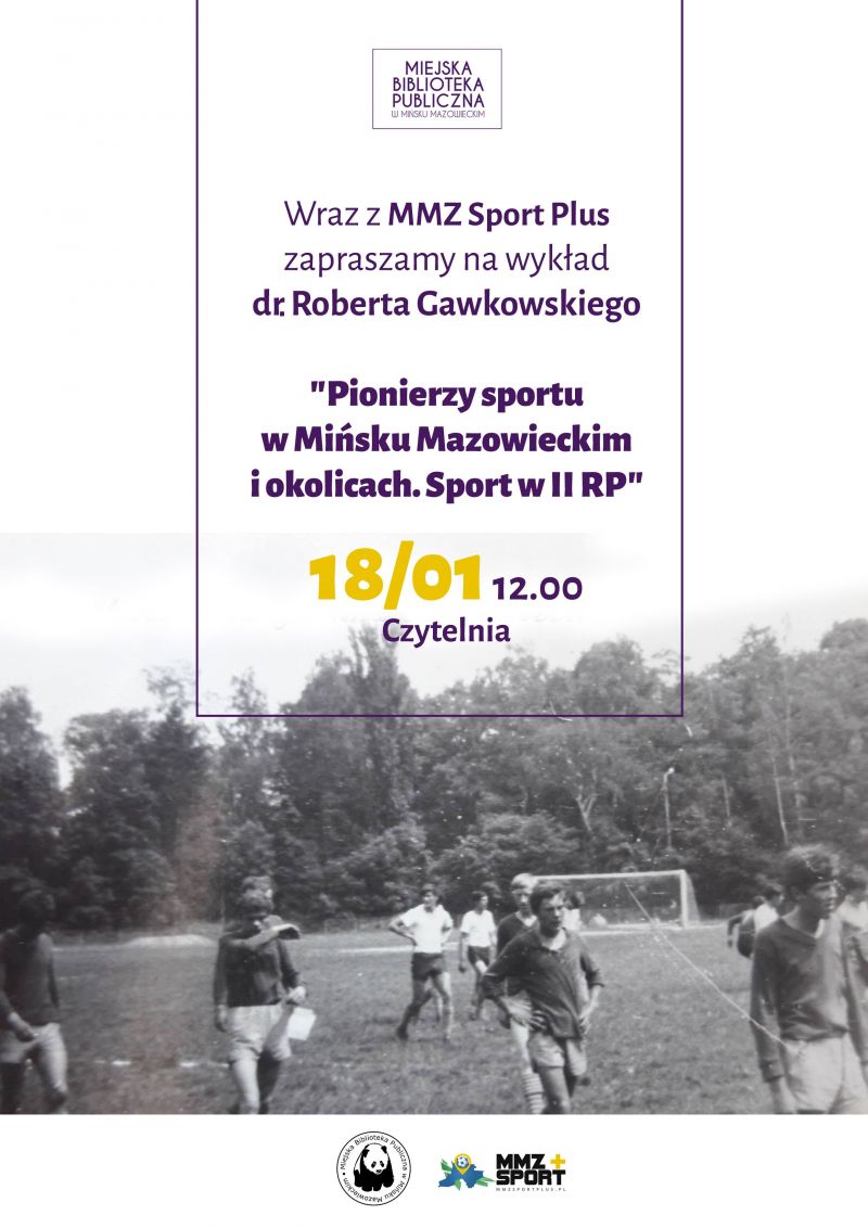 Niebawem, bo już 18 stycznia, będziemy mieli okazję skonfrontować nasze wyobrażenia o sporcie w okresie przedwojennym z rzeczywistością tamtych dni. Biblioteka wspólnie z MMZ Sport Plus zaplanowała spotkanie z dr. Robertem Gawkowskim, który poprowadzi wykład zatytułowany "Pionierzy sportu w Mińsku i okolicach. Sport w II RP". Wspólnie posłuchamy o ludziach tworzących historię naszego miasta.