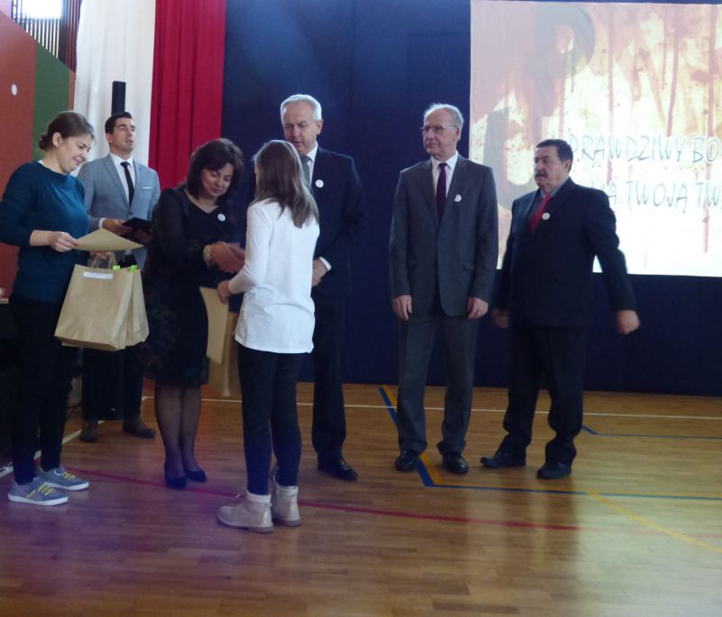 Przedstawicielka Towarzystwa Nasz Dom – Elżbieta Prządka oraz przedstawicielka Poczty Polskiej – Dorota Kilińska wręczyły dyplom i nagrodę za zajęcie III miejsca w Polsce i gorąco gratulowały tak dobrego wyniku. Podziękowały w imieniu dzieci, którym pomagają. Powiedziały, że rozpiera je duma i wdzięczność za to, że Zespół Szkolno-Przedszkolny nr 1 w Mińsku Mazowieckim od kilkunastu lat jest z nimi.