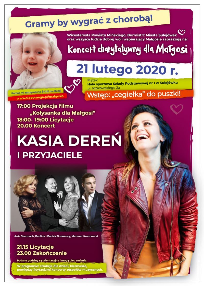 „Gramy, by wygrać z chorobą!” to tytuł koncertu charytatywnego dla Małgosi, podczas którego wystąpią artyści o wielkim sercu m.in.: Kasia Dereń, Ania Szarmach, Paulina i Bartek Gruszeccy oraz Mateusz Krautwurst.