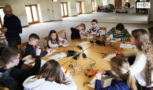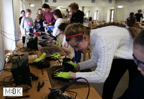 Tajne szyfry, kody i zagadki przygotowane przez instruktorów Innovative Lab opanowały MDK podczas czwartego dnia zajęć. Dzieci zostały podzielone na trzy grupy i uczestniczyły po kolei w różnych aktywnościach. Przeprowadzony został maraton Minecraft z elementami programowania - gra turniejowa w oparciu o przygotowaną mapę i serwer. W pokoju zagadek „Twierdza Szyfrów” trzeba było odkryć szyfr poprzez analizowanie, łączenie faktów i rozwiązywanie zadań matematycznych. Liczyły się spryt i spostrzegawczość. W matematycznym pokoju zagadek MathRiders okazało się, że nauka matematyki może być przygodą i świetną rozrywką.