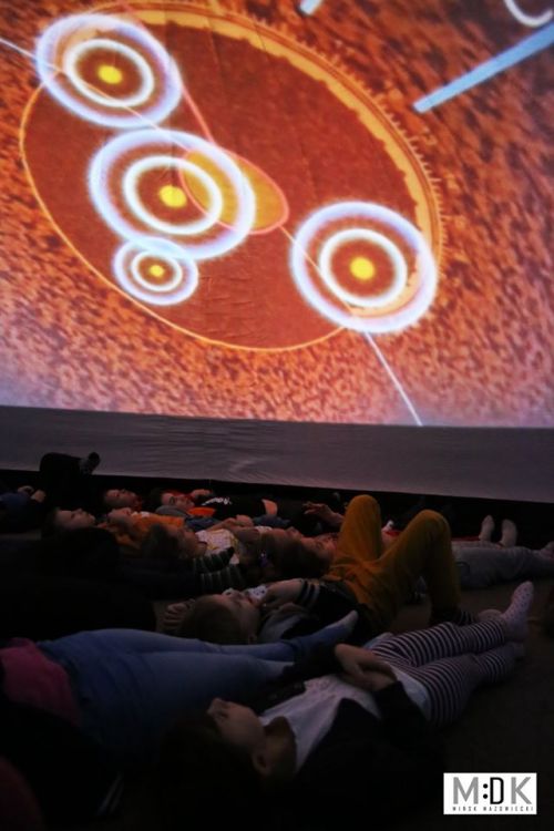 We wnętrzu na kopule sferycznego namiotu wyświetlany był specjalnie przygotowany pokaz astronomiczny. Podczas seansu dzieci poznawały tajemnice kosmosu, jego bliższe i dalsze rejony.
