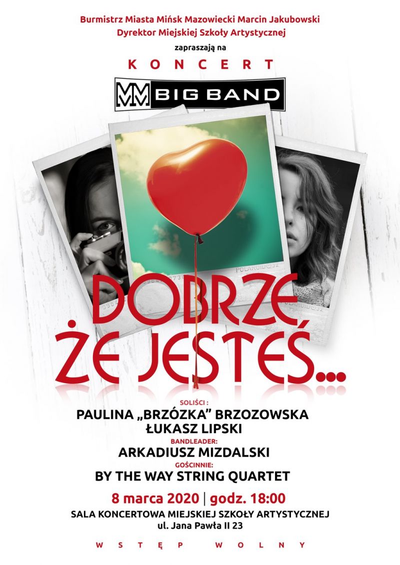 Zapraszamy na Koncert MM Big Band z okazji Dnia Kobiet. 8 marca 2020, godz. 18.00, Miejska Szkoła Artystyczna - Sala Koncertowa. Wstęp wolny.
