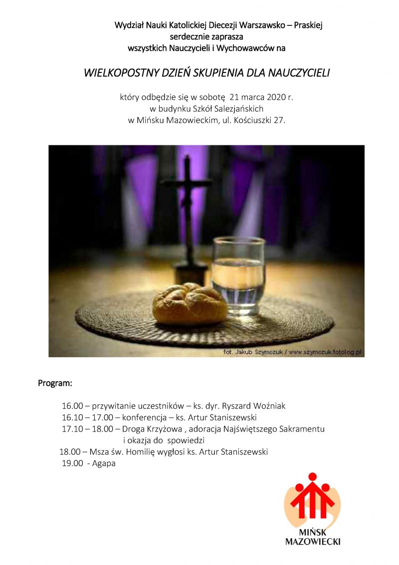 WIELKOPOSTNY DZIEŃ SKUPIENIA DLA NAUCZYCIELI, który odbędzie się w sobotę 21 marca 2020 r. w budynku Szkół Salezjańskich