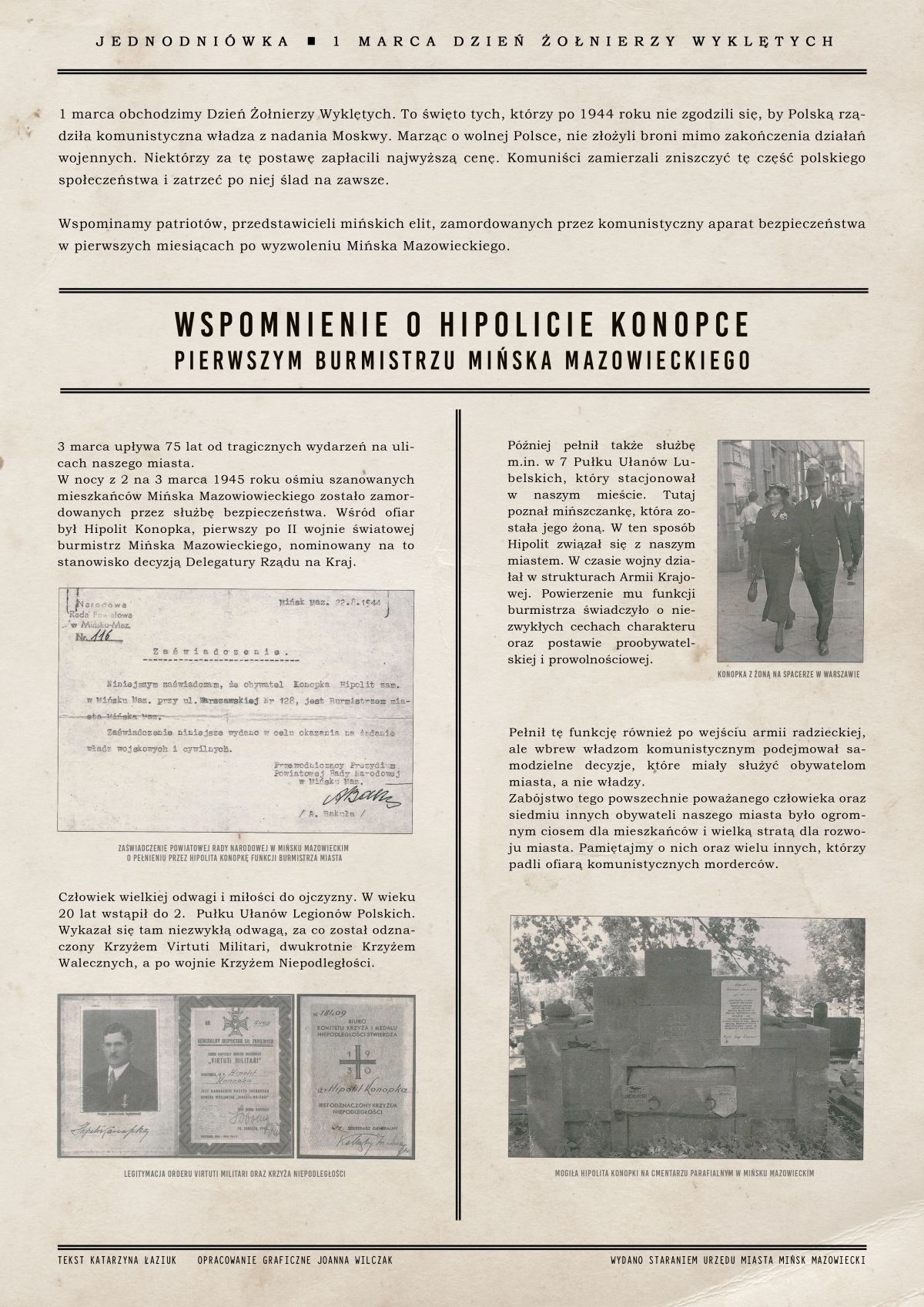 W nocy z 2 na 3 marca 1945 roku ośmiu szanowanych mieszkańców Mińska Mazowieckiego zostało zamordowanych przez służbę bezpieczeństwa. Wśród ofiar był Hipolit Konopka, pierwszy po II wojnie światowej burmistrz Mińska Mazowieckiego, nominowany na to stanowisko decyzją Delegatury Rządu na Kraj.