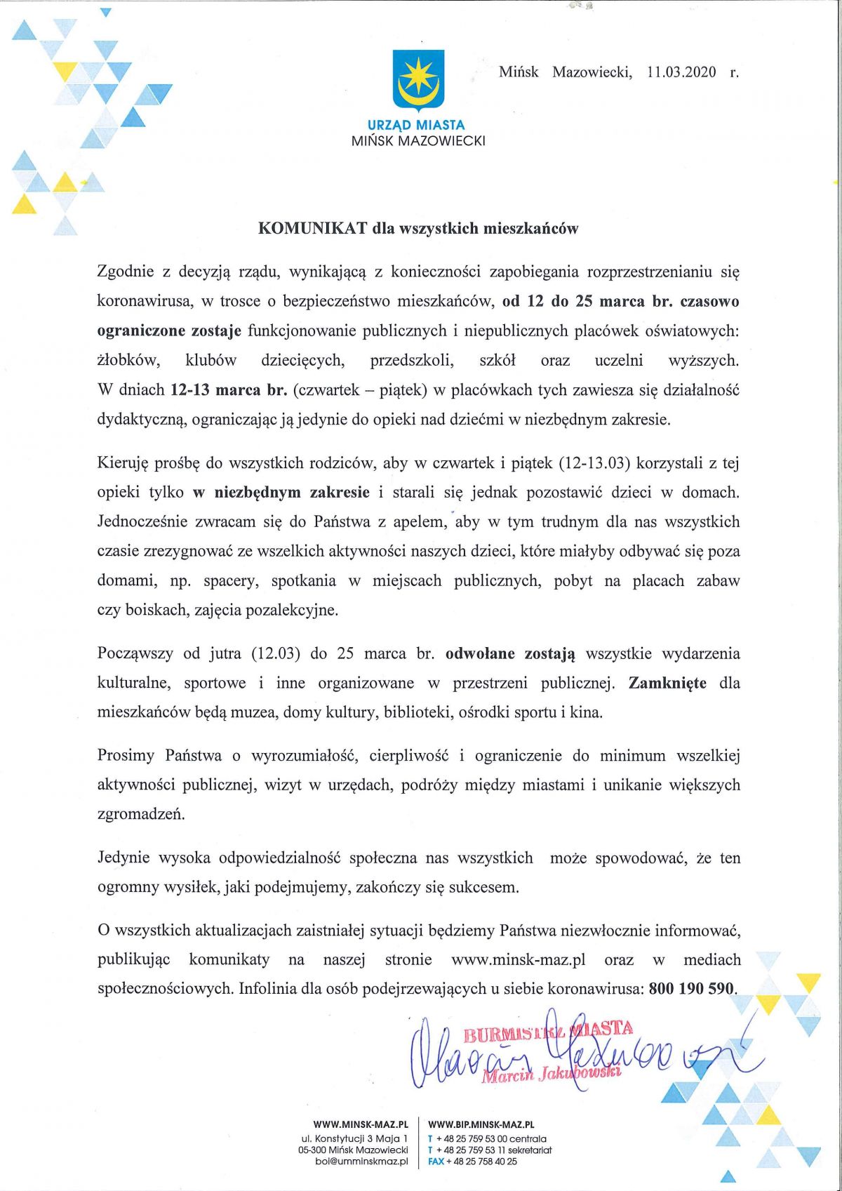 10 KWIETNIA 2020 r. (Wielki Piątek) Urząd Miasta Mińsk Mazowiecki czynny jest do godz. 12.00.