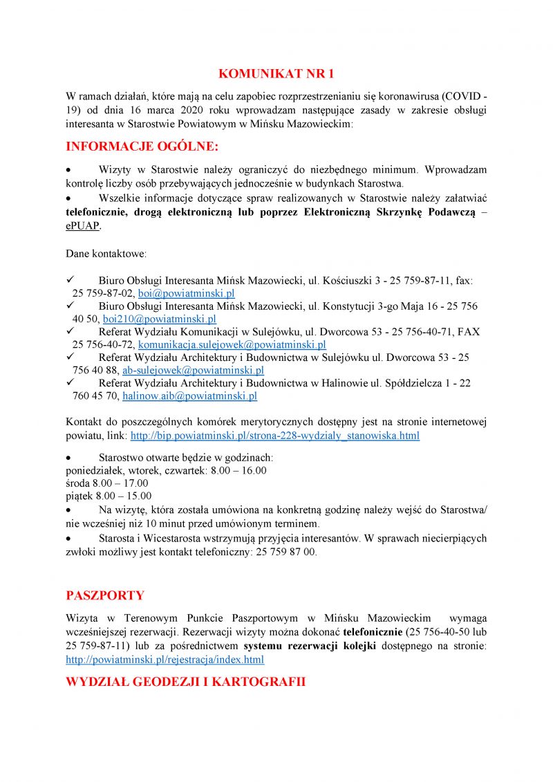 Zarządzenie Dyrektora Zarządu Gospodarki Komunalnej w Mińsku Mazowieckim z dnia 23.03.2020 r. w sprawie ograniczenia obsługi interesanta w budynku Zarządu Gospodarki Komunalnej w Mińsku Mazowieckim