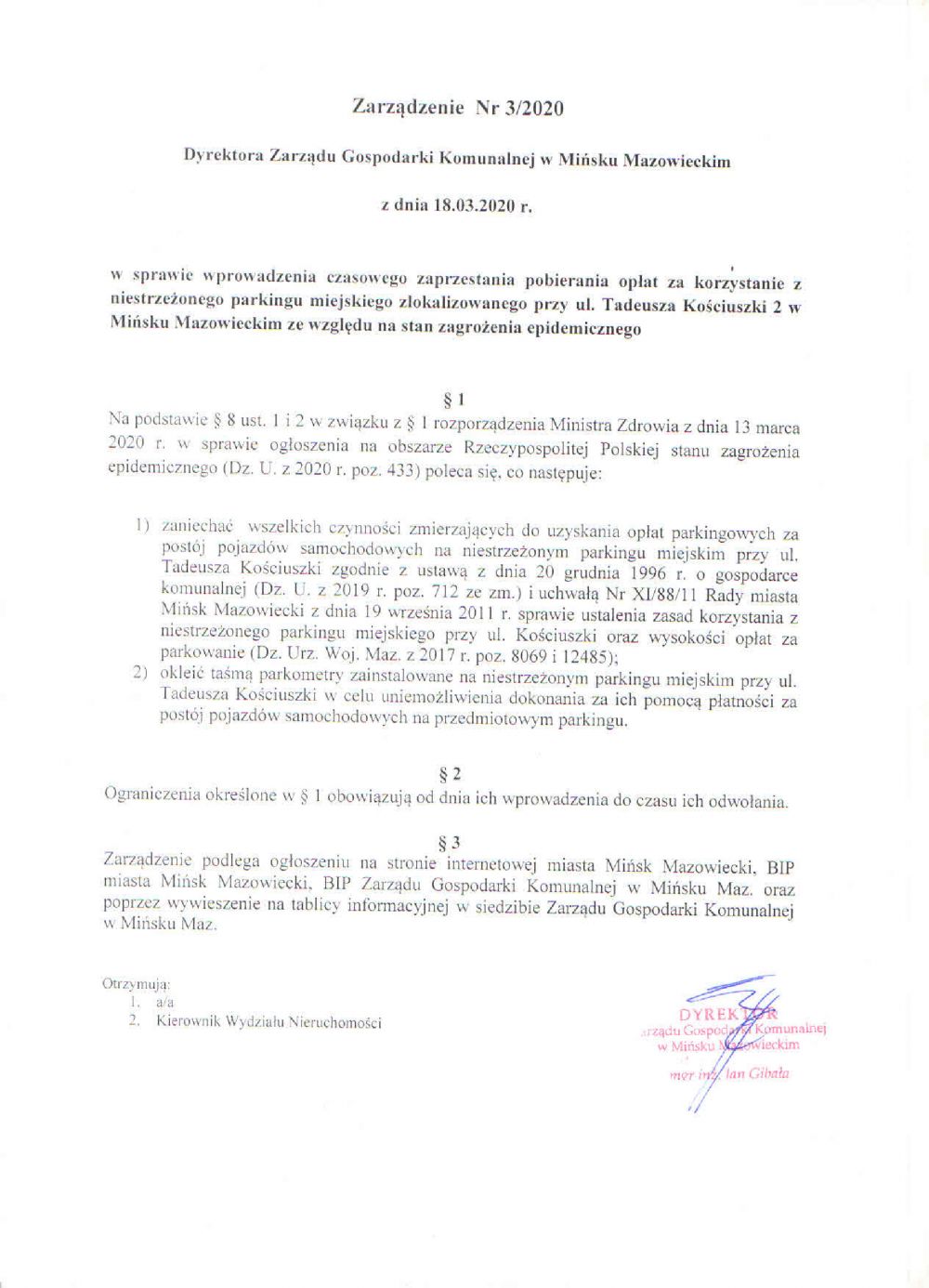 Zarządzenie Dyrektora Zarządu Gospodarki Komunalnej w Mińsku Mazowieckim |