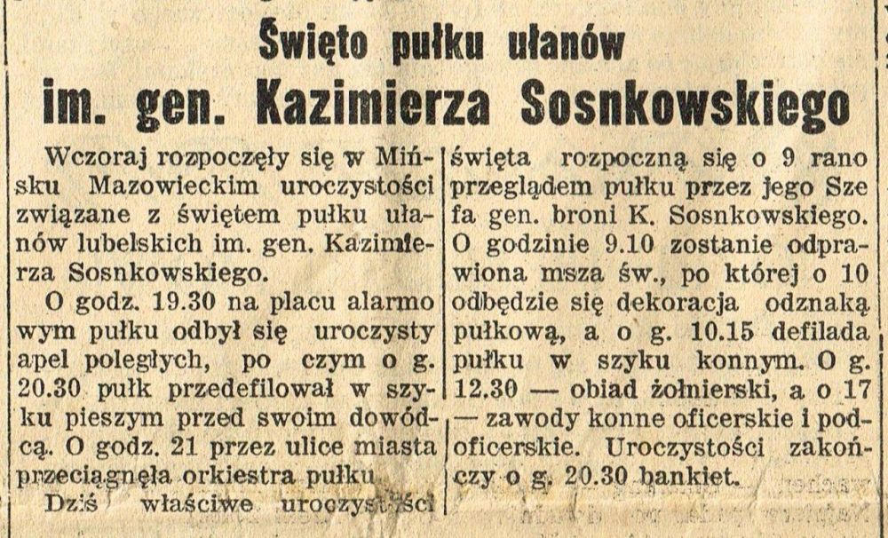Święto 7. Pułku Ułanów Lubelskich: zdjęcia i artykuły w gazetach polskich sprzed 1939 roku |