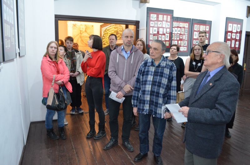 Mieczysław Bieleń opowiedział o swojej bogatej kolekcji, o tym, czym jest exlibris i jaka jest jego historia, odpowiadając na wszystkie pytania publiczności i oprowadzając jednocześnie po wystawie.